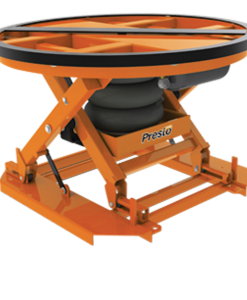 The All-Around Pneumatic Airbag Leveler features a reinforced heavy-duty airbag that inflates as needed and can handle loads as heavy as 4,500 pounds, while the All-Around Spring Load Leveler features heavy-duty springs and shock absorbers to easily and comfortably raise or lower pallets as you add or remove boxes. The All-Around Spring unit is generally preferred when you are working with more or less consistent weights. Both machines have turntable tops with anti-friction bearings so you can easily spin the load to face you without having to walk around it.