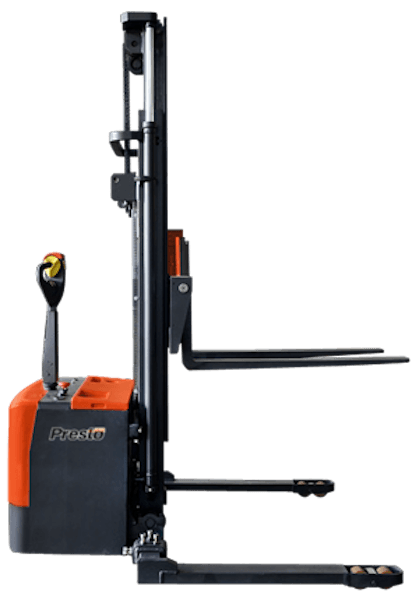 For heavier loads, the PowerStak Heavy-Duty is the answer. It is an industrial grade walkie that easily handles up 3,000 lbs. at a 24″ load center. It’s 125″ raised height allows it to service rack up to 10 feet high.